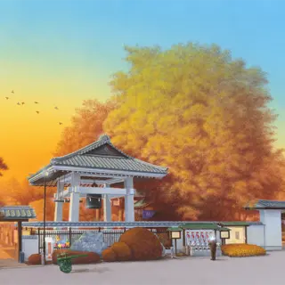 「過去と未来をつなぐ開山堂からの祈り」 (2025年作|P20号) 地元・さいたま市大宮の大成山普門院様の 阿部道彦ご住職よりご依...